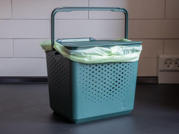 - Den nye grønne køkkenkurv er lavet af 100 % genanvendt plast.
